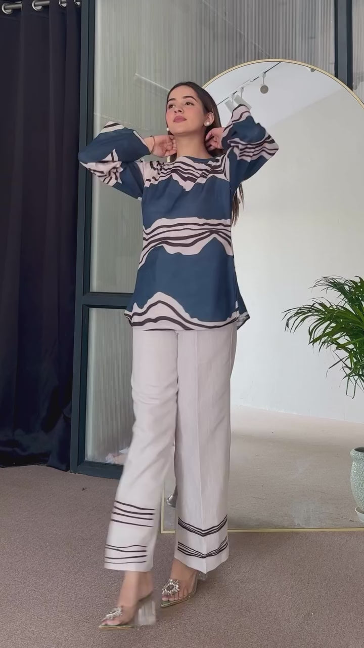 Unleash your bold side with this modern abstract-print co-ord set – a fusion of comfort, style, and sophistication. Designed for the confident woman who loves effortless fashion with a twist.
