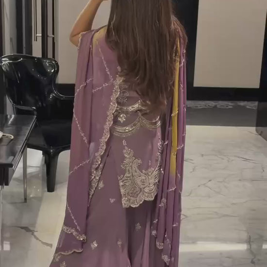 Lavender Faux Georgette Kurta with Sharara & Dupatta